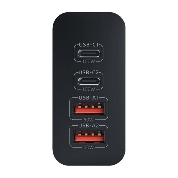 The two USB-C ports provide up to 100 watts of power each, allowing you to charge PD laptops like MacBooks and Windows ultrabooks. The USB-A ports offer up to 60 watts - great for smartphones, powerbanks or portable consoles. Regardless of the combination, the charger intelligently distributes power for fast and safe charging.